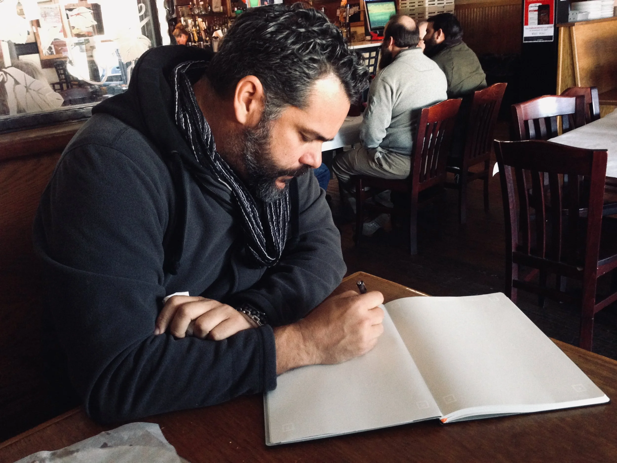 Rick Delgado and I got together at Fabiano’s Pizza in downtown Douglasville, Georgia (just a block away from where some scenes of Stranger Things were filmed). Rick is taking notes as we plan out our approach to filming our mini-documentary.