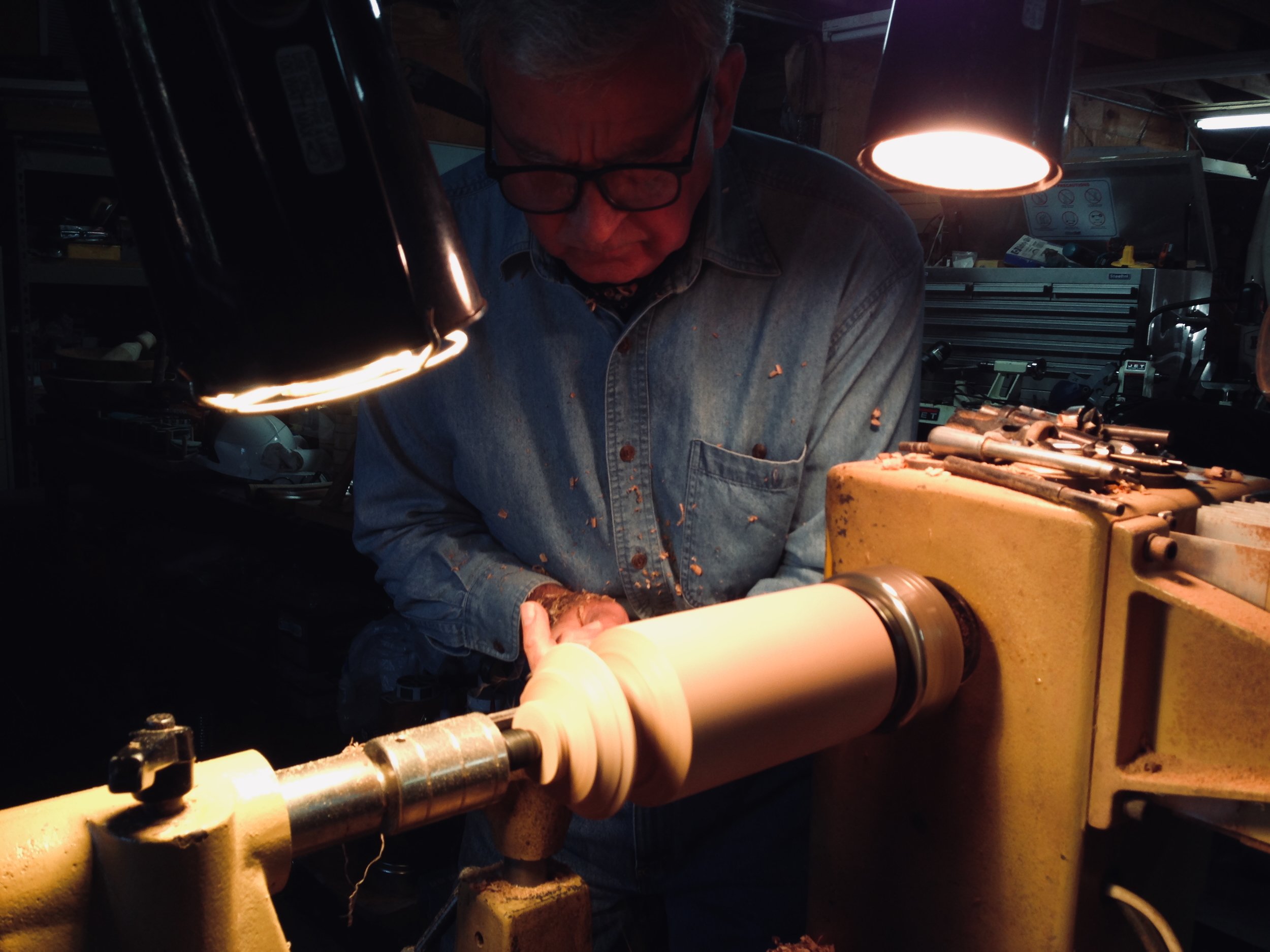 Danny McCravy making an urn. The whole process of Danny turning the small urn was beautifully captured by Rick Delgado. After the filming was over, Danny gave the finished urn to Rick.