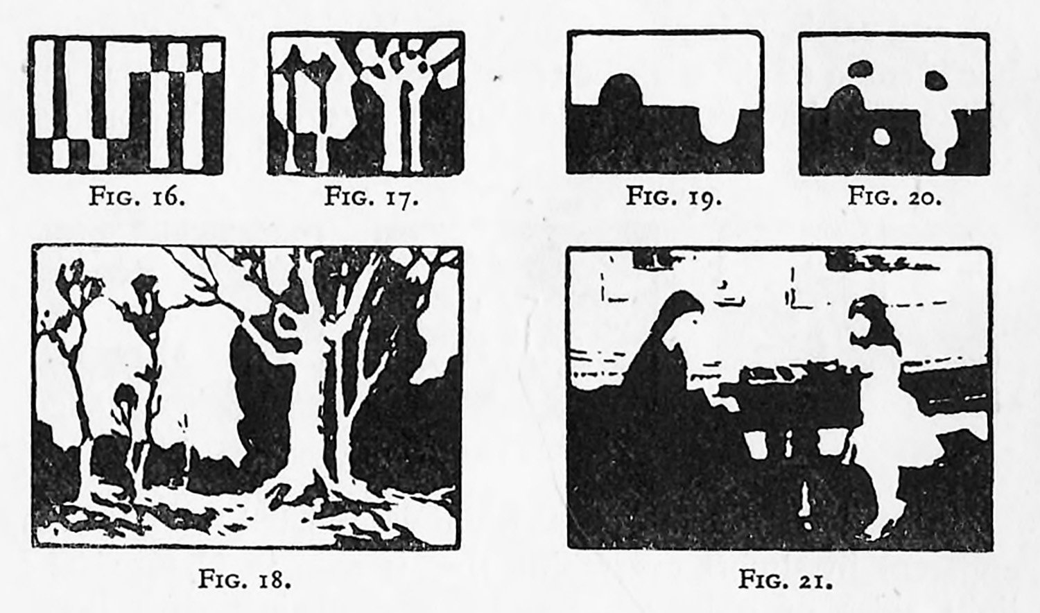 Figs. 16 to 21 show two pictures—one by Harpignies and the other by Whistler—analysed to illustrate the principle of interchange.