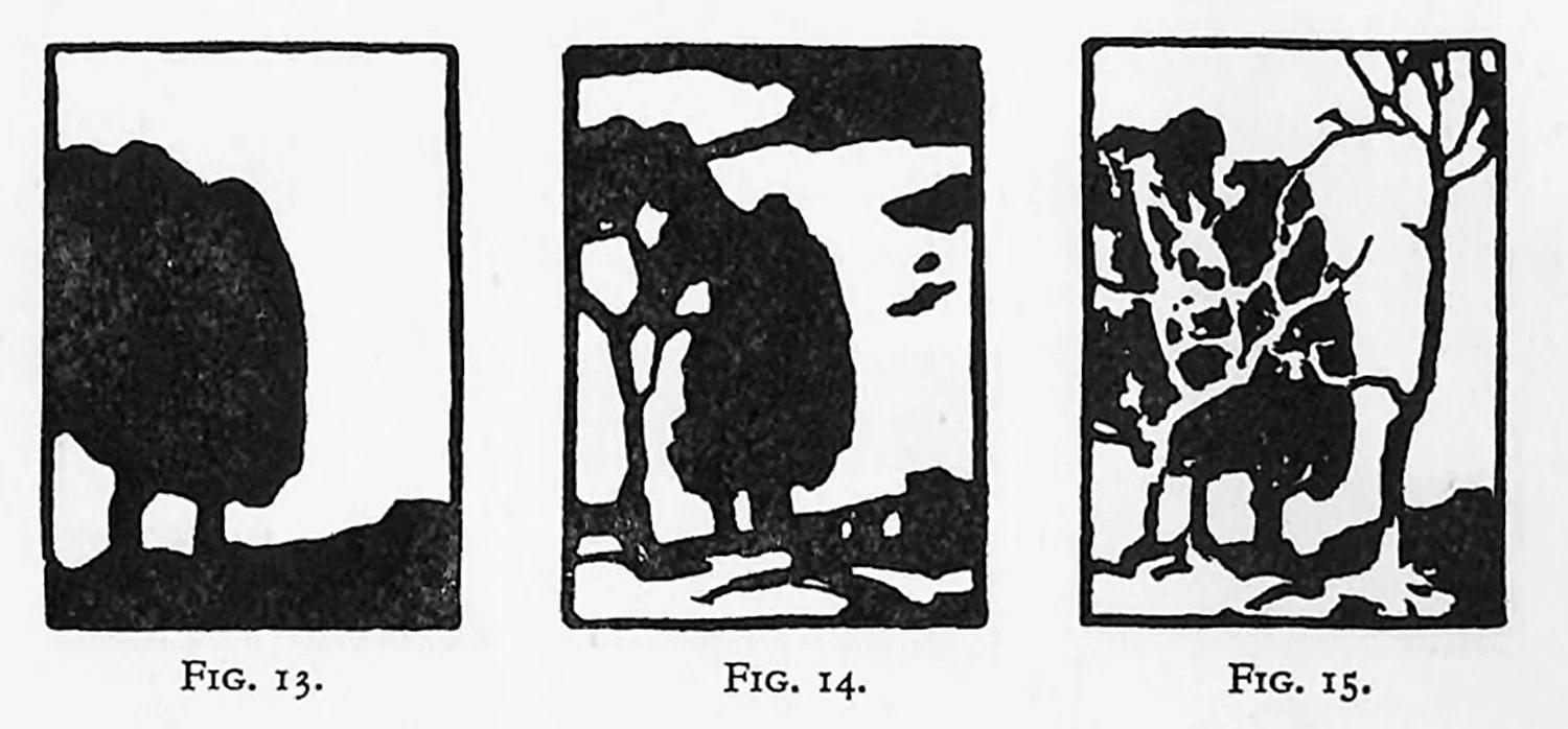 Once this principle has been assimilated it becomes apparent in almost everything that is seen in Nature. The light sides of objects are often seen against dark backgrounds, whilst the dark sides of the same objects are contrasted with a light ground. Light trees against dark trees, and dark trees silhouetted against the sky, may be seen at one and the same time.