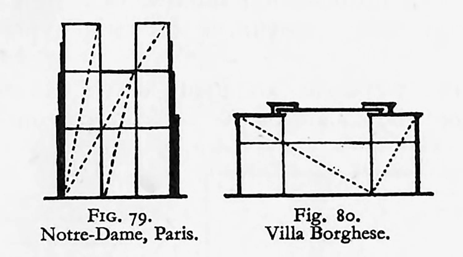A great deal has been written in works on architectural composition regarding consistent rectangles and how their use makes for unity. Two examples, adapted from J. B. Robinson’s Architectural Composition (published by Batsford), are given in Figs. 79 and 80.