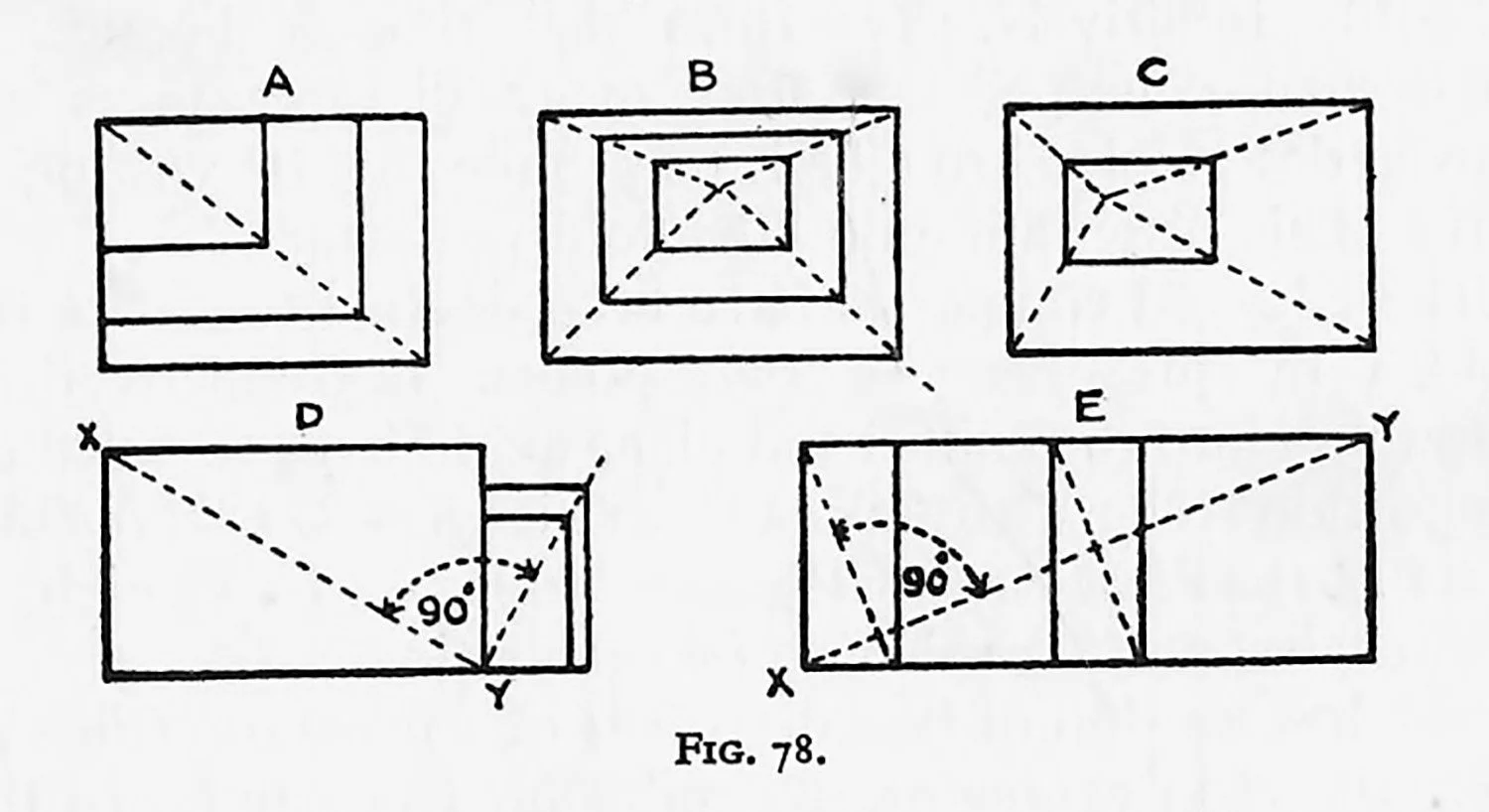 hus, in the diagrams A, B, and C in Fig. 78, by means of the constructions shown by the dotted lines, we obviously make the inner and outer rectangles similar in proportion.