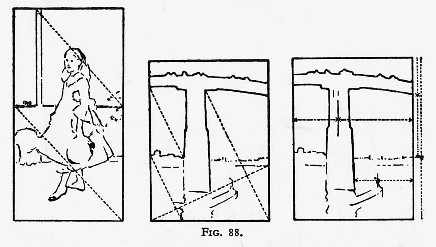 he student’s attention is drawn to such similarity of proportion in the rectangles of Whistler’s Battersea Bridge and his Miss Alexander, shown in Plate XXII and Fig. 88. Many other examples could be shown to illustrate this reiteration.