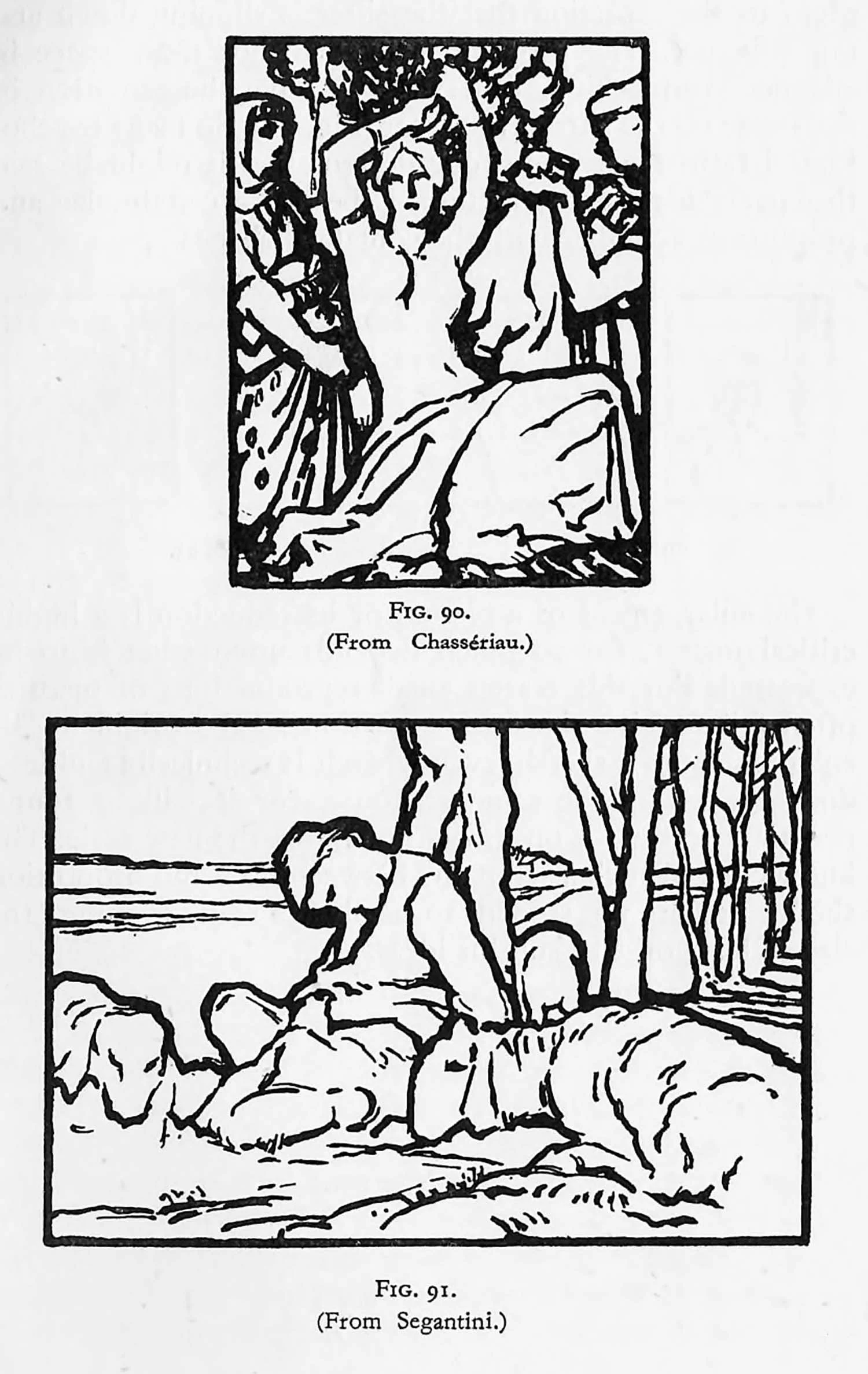 When the student finds the human interest becoming too strong in a landscape, a piece containing the figures should be cut out and considered on its merits as a figure composition. It could then be re-designed, making the figures reasonably occupy the whole space. Figs. 90 and 91 are examples of bold design.